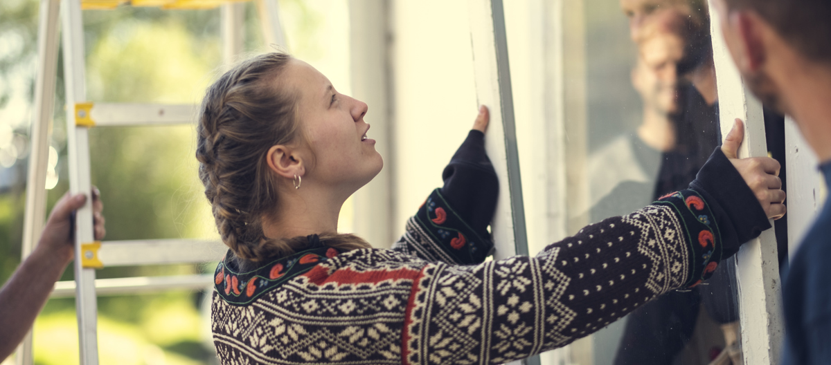Ella er opptatt av å vise respekt for det gamle. Hun liker å jobbe med materialer som har vært til lenger enn henne selv. Derfor har hun meldt seg på et kurs i tradisjonell vindusrestaurering som går over to dager.