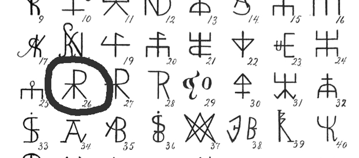 Bumerket til Mikkjel Bø 1710 Tavle 2. Hentet fra Vossaboki. Bumerket er ringet inn.