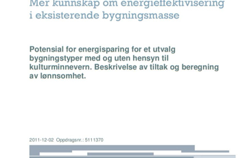 Rapporten tar for seg potensialet for energisparing i et utvalg bygningstyper med og uten hensyn til kulturminnevern. Den gir en beskrivelse av tiltak og beregn…