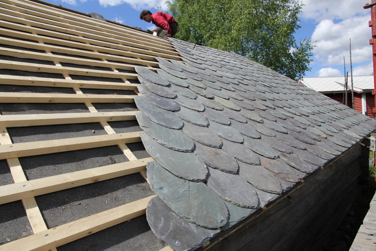 Sløyfer og lekter kan være i impregnert trevirke. Man kan forvente at taket utsettes for mye vær og fuktighet, derfor velges det ofte impregnert virke til sløyfer og lekter. Impregnert trevirke skal sorteres og leveres som farlig avfall på mottak. Dette taket har nye lekter og sløyfer, og her har man brukt god kvalitet furu fremfor impregnert materiale.