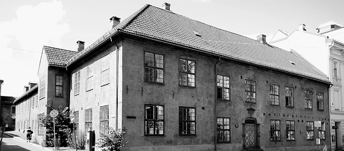 Den gamle allmue- og fattigskolen i Hospitalgata (1806-1861). Foto: Oslo Bymyseum.