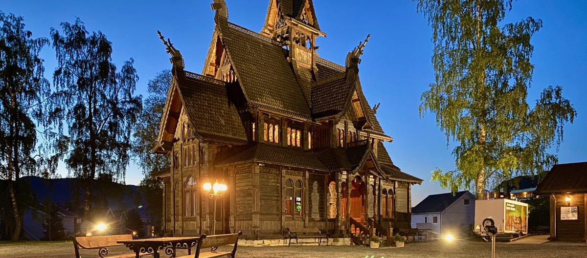 Så hva har alt dette å gjøre med en stavkirkebygning og en gjeng engasjerte pensjonister på 2010-tallet? Da det ble besluttet at Norge skulle sende et eget bidrag til verdensutstillingen i Chicago i 1893, ble det utlyst en konkurranse. Christian Thams leverte tilbud, og vant. Jobben med å tegne bygget gikk til arkitekt Waldemar Hansteen som hadde vært med å flytte Gol Stavkirke til Folkemuseet på Bygdøy. Produksjonen av bygget, gikk til Christian Thams og Strandheim Brug på Orkanger. Her brukte arbeidsfolkene på bruket kun tre måneder på å produsere bygget, inkludert alle håndskårne detaljer som ble skåret av lokale treskjærere.