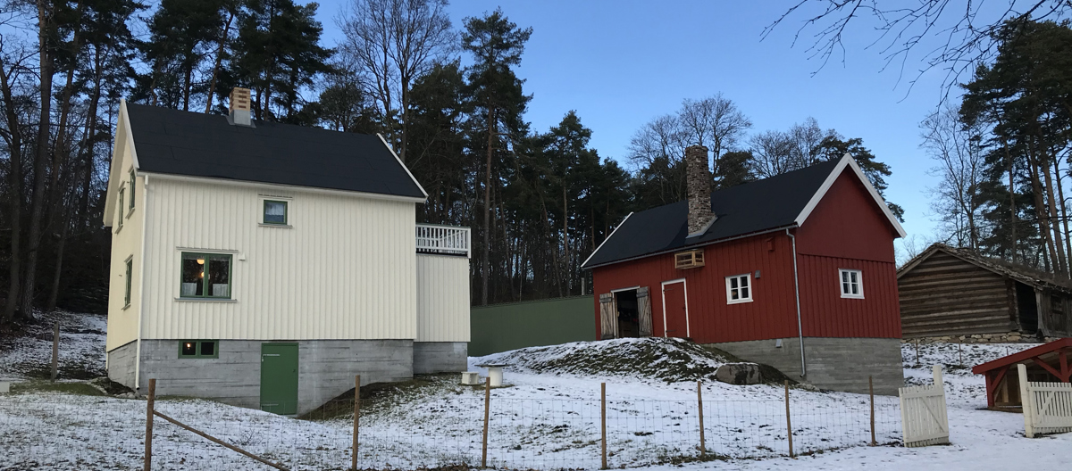 På museet setter vi opp hus «for evigheten» og kunne ikke gjenta disse svakhetene. Vi måtte legge inn føringsveier for sterkstrøm og signalkabler, stubber fjernes, radonsperre skulle på plass, fjell skulle pigges bort, byggegropa skulle dreneres og grunnmuren skulle forskales, armeres og støpes. Grunn- og betongarbeider var altså en stor entreprise, og vi måtte holde anbudskonkurranse for å velge entreprenør til dette. Selv om metodene er moderne har vi bestrebet oss på å få en så riktig overflate på grunnmurene som mulig.