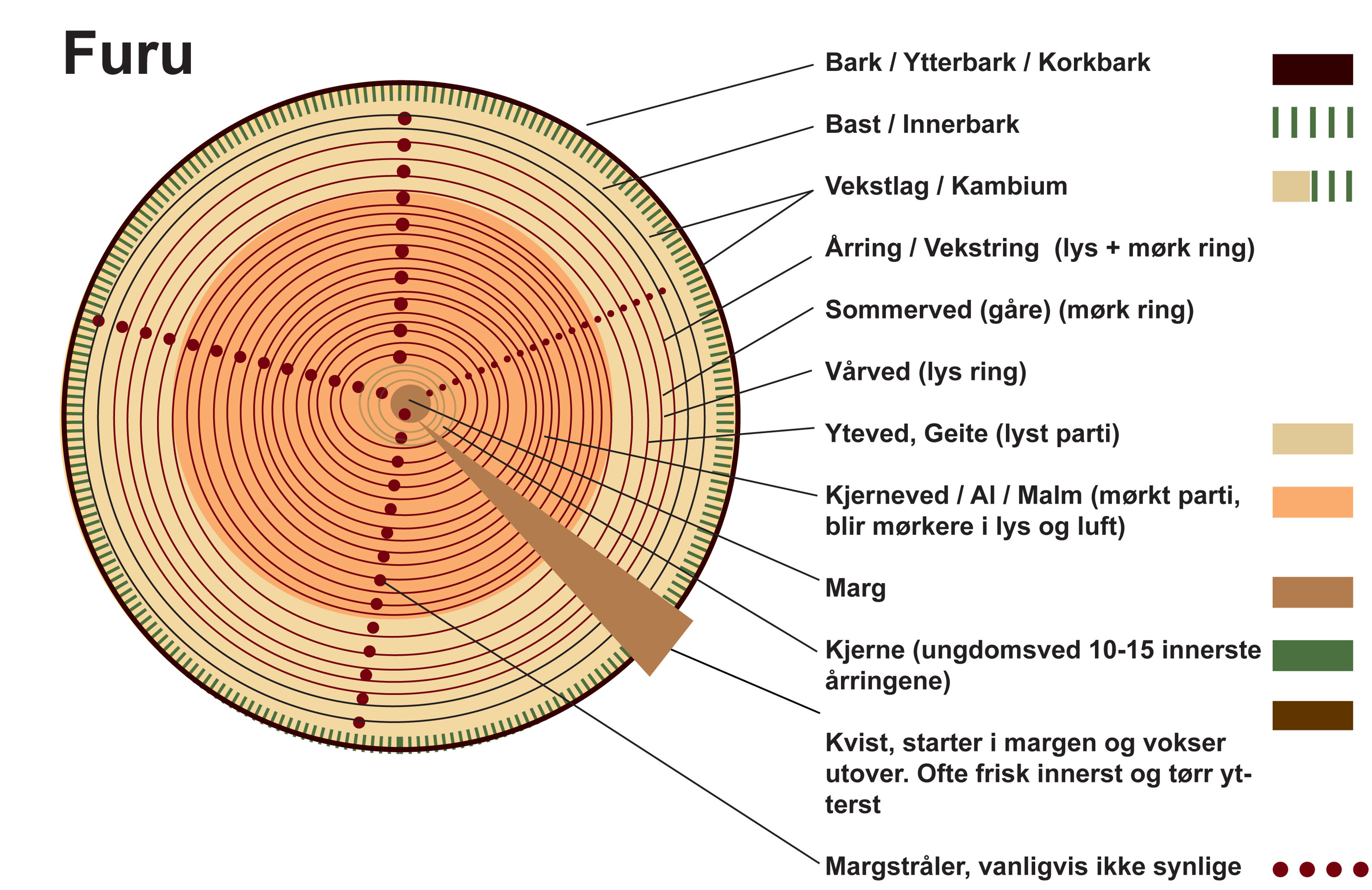 Løvtre. Varmekjært treslag som begrenser seg til den sørlige delen av landet. Fargen er lys, men kjerneveden kan ofte være mørkere i forskjellige fargetoner. Brukes til verktøy, sportsutsyrt etc.