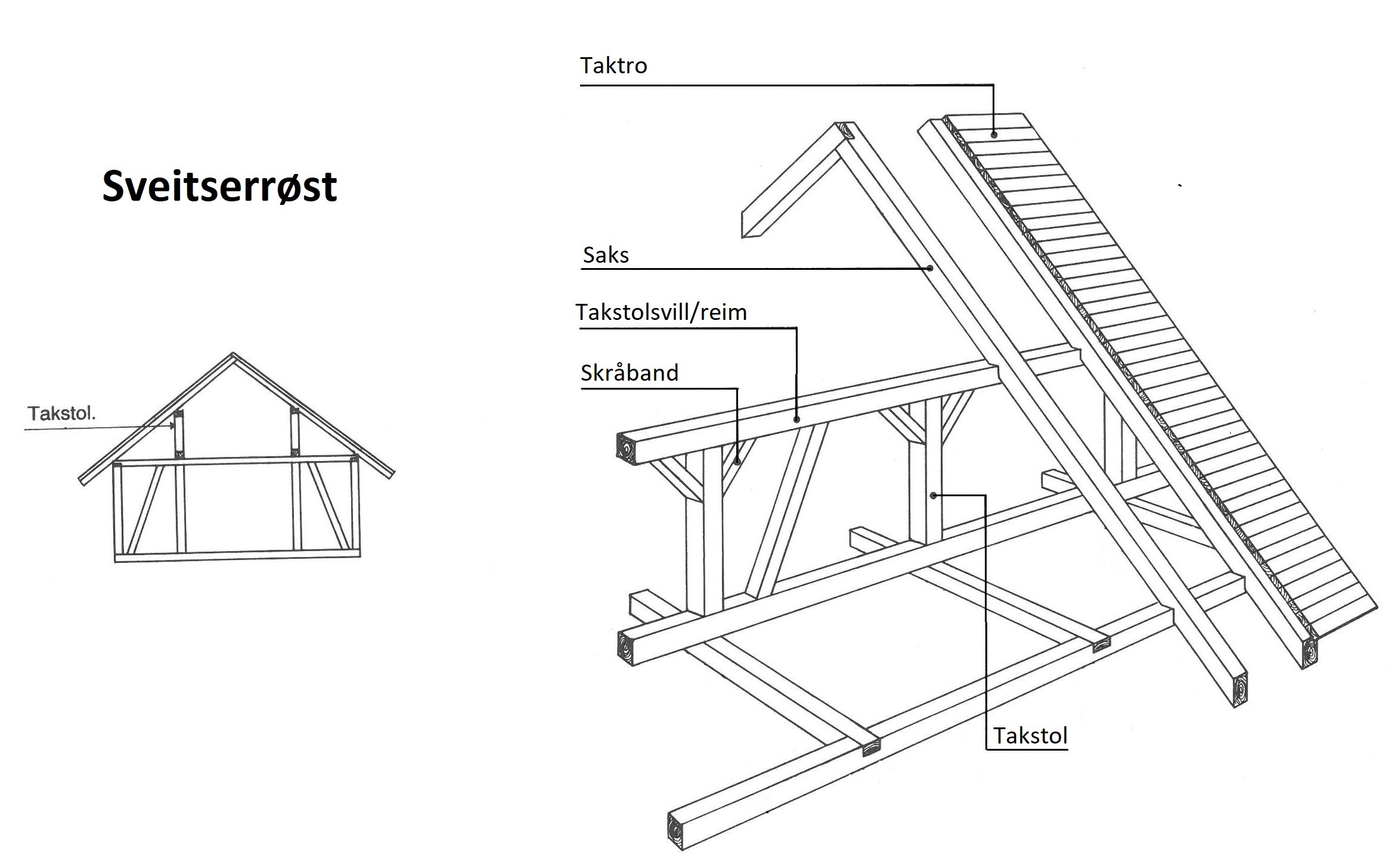 Takkonstruksjon der taklastene blir tatt opp av tettstilte sperrer og lastene ført ned til grunn gjennom takstoler og bærevegger.