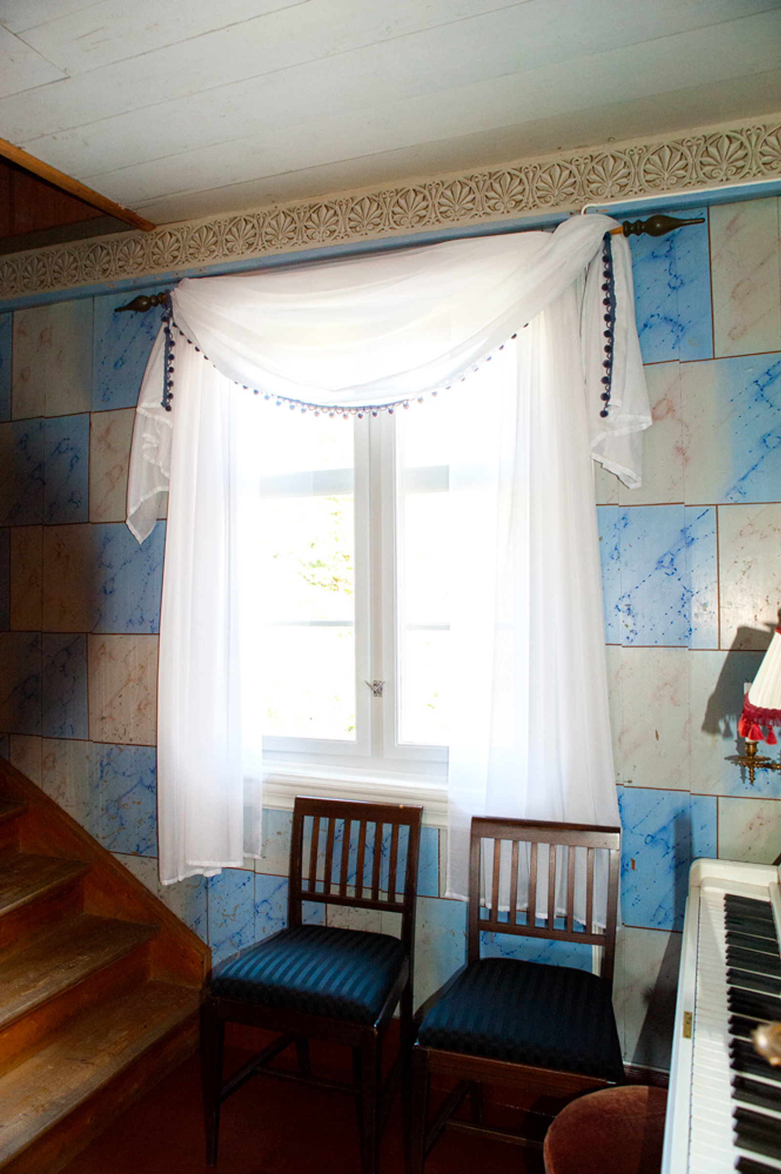 - Da vi skulle innrede de lyse, lette 1900-talls leilighetene i Wessels gate fant vi inspirasjon og konkrete eksempler på tidsriktig gardinoppheng i kunstnerhjem, som Bjørnsons Aulestad, Garborgs Labråten og i Gerhard Munthes malerier fra Leveld på Lysaker. Malerier og akvareller fra tiden er en flott kilde til informasjon. Svenske Ellen Keys bok, som ble oversatt til norsk i 1903, «Gjer heimen din fager» gir oss konkrete beskrivelser av gardinmoten. Det enkle er det fineste, i følge Key. Denne trenden, som startet i kunstnermiljøene tidlig på 1900-tallet, fikk bredere gjennomslag med 1930-tallets funksjonalisme. Gardinene skulle være lyse og lette. Det var vanlig og trendy med en enkel kappe kombinert med retthengende sidegardiner, forklarer konservatoren.