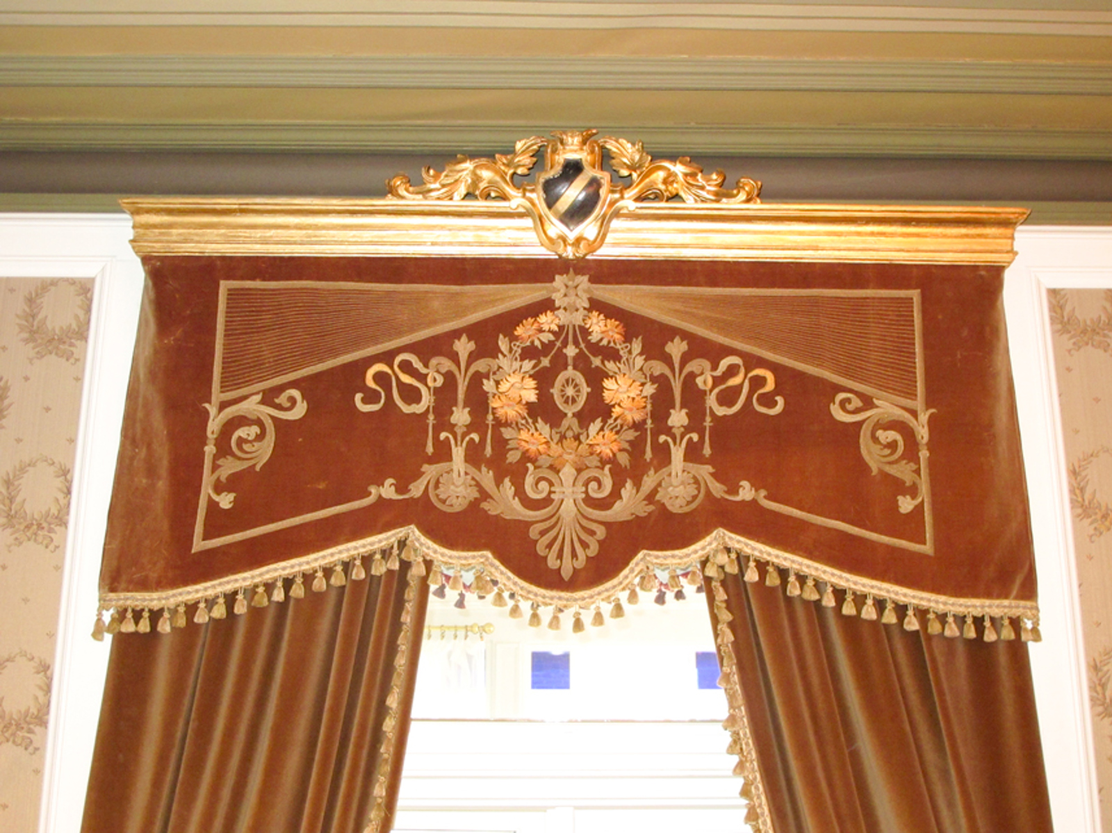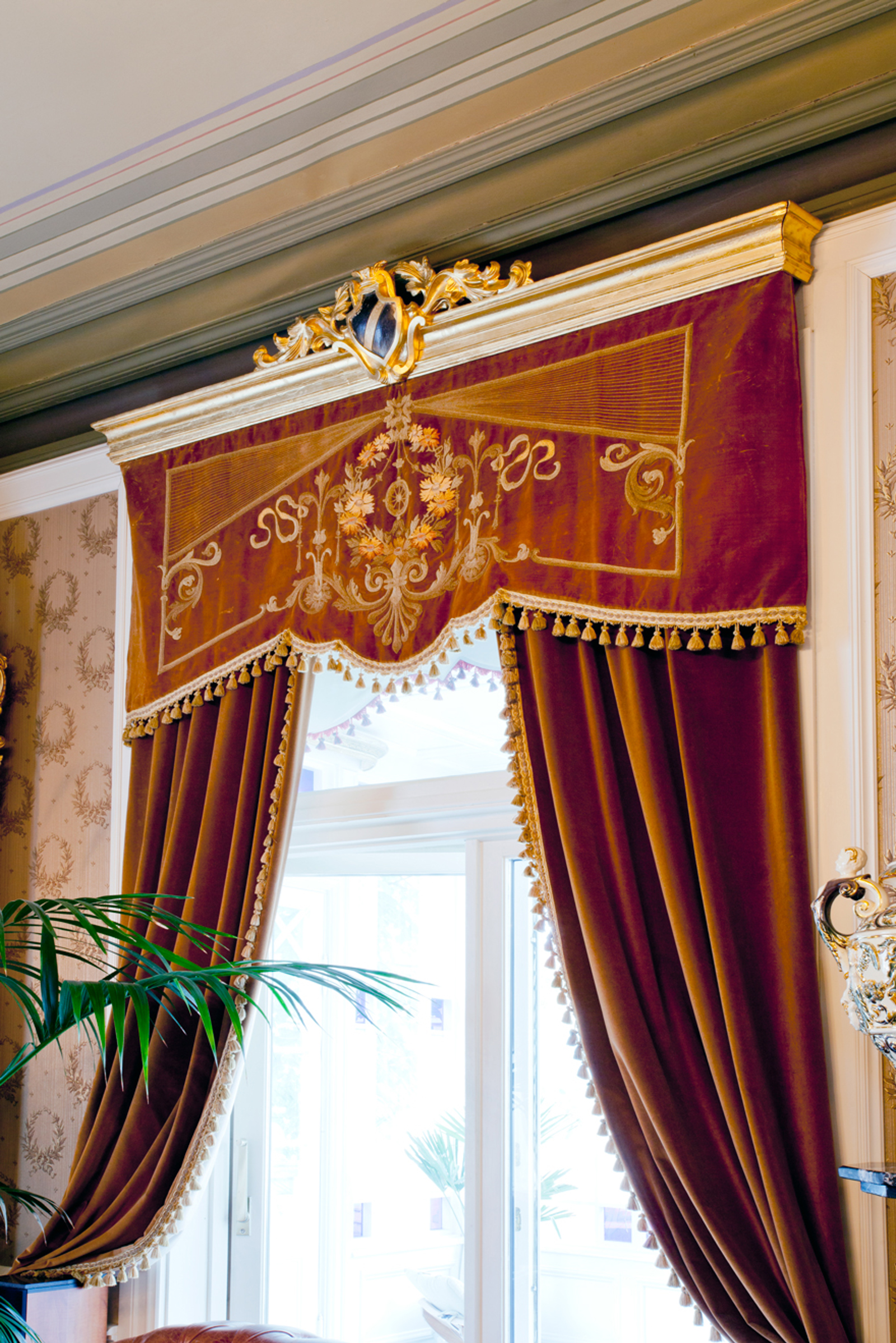 - De originale gardinene i den blå salongen var bevart og i fallen kunne vi se hvor fargesterke de en gang hadde vært. Ibsen flyttet inn i Arbinsgate i 1895 og levde her de siste 11 årene av sitt liv. Vi vet at det var hans svigerdatter, Bergljot, som valgte ut disse gardinene. Da vi skulle rekonstruere leiligheten fikk vi vevet nye kopier av silkegardinene, i Frankrike.