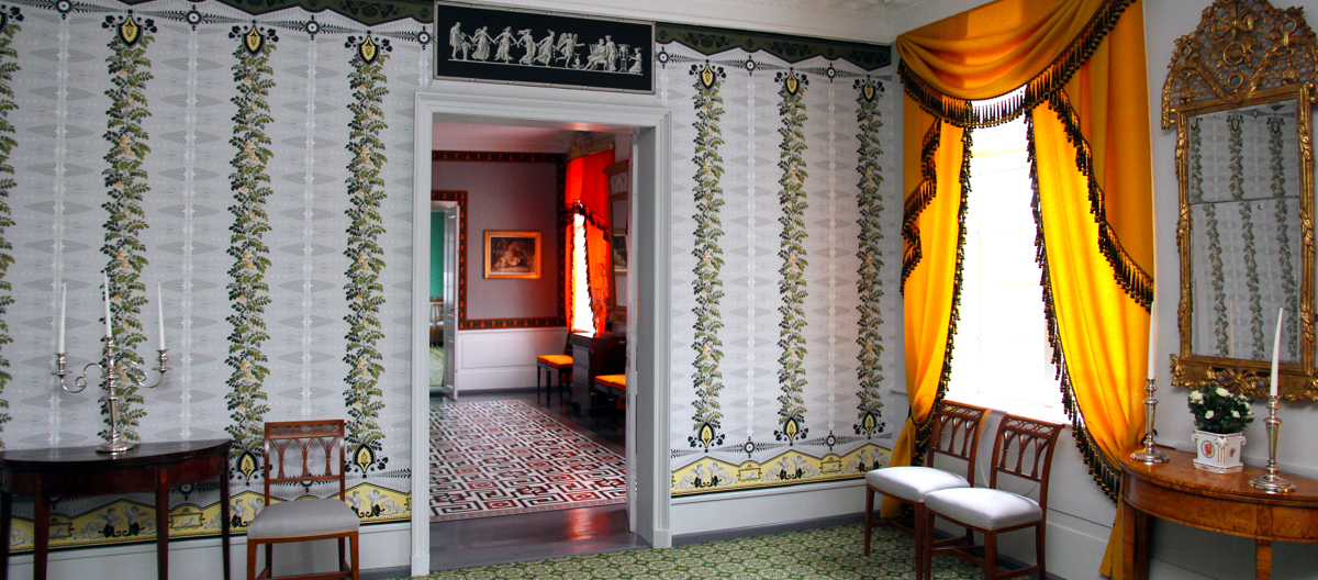 I Henrik Ibsens leilighet i Arbinsgate henger det nøyaktige kopier av forfatterens eksklusive silkegardiner.