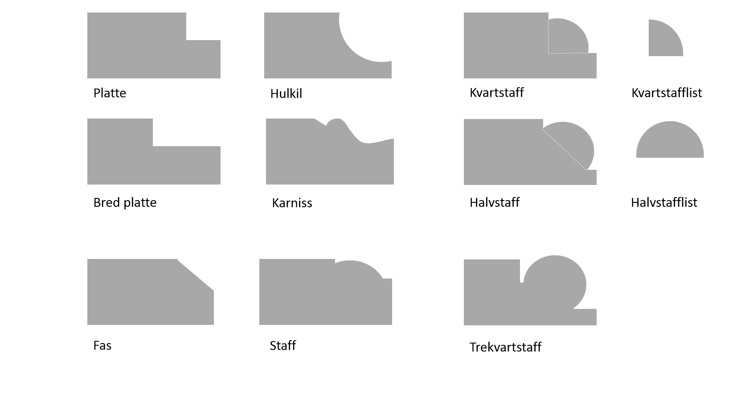 Så kommer man til byggevarehuset, og da er det tydelig at det som tilbys i standardutvalget slett ikke kan brukes. Moderne lister har feil dimensjoner og feil profil. Derfor må man ofte spesialbestille eldre listeprofiler. Og det er lett! Det er mange som kan levere gamle profiler, se etter snekkerverksteder, høvlerier og enkelte sagbruk. Ofte har de lokale bedriftene høvelstål på profilene som er utbredt i lokalt.