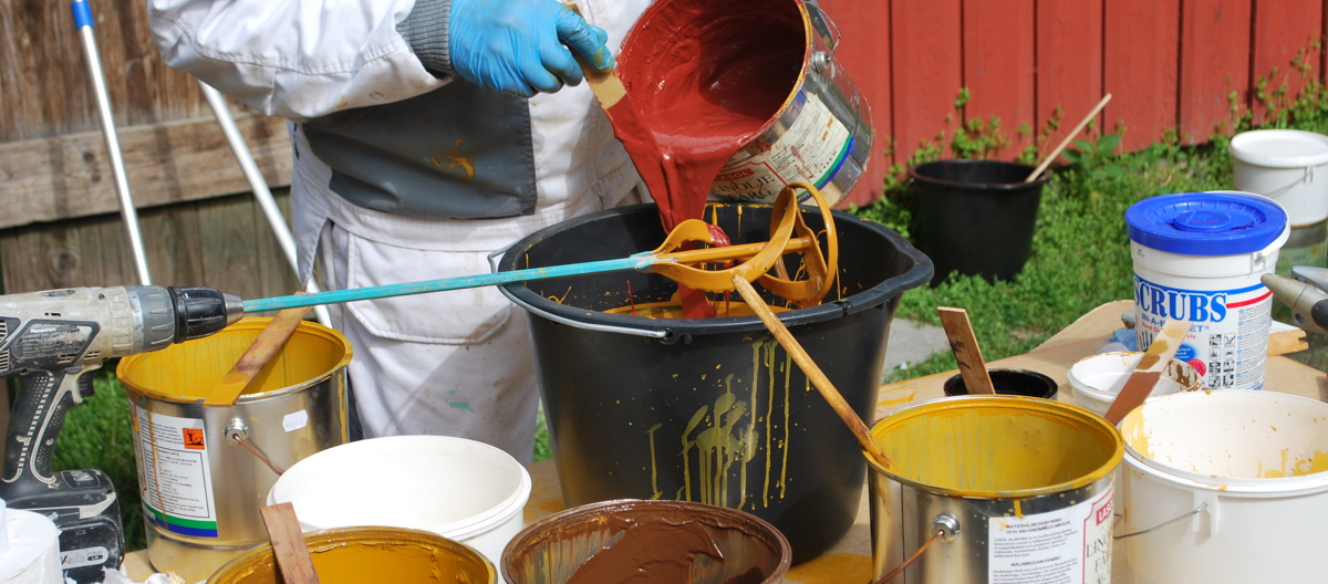 Inntil for bare få år siden var linoljemaling vanskelig å oppdrive. I dag finnes det mange importører og forhandlere som selger linoljemaling. Mange typer importeres fra Sverige Foto: Bygg og Bevar