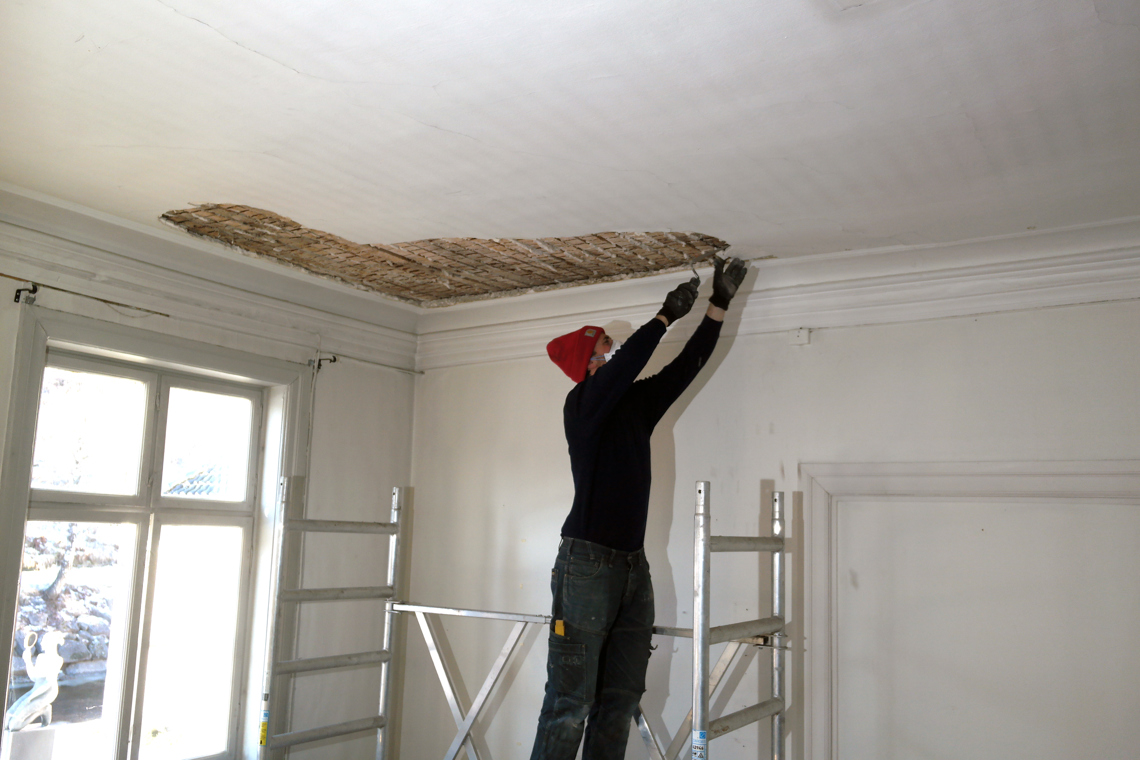 Bordene bør renses godt før sivmatter og puss legges på. Det sikrer at rørvevet ligger jevnt og at man ikke får støv og partikler i den friske pussen. Foto: NKHN