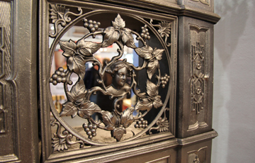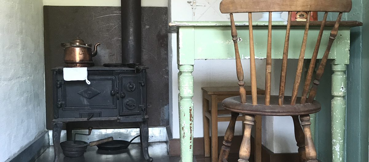 Utviklingen av ildstedet! Fra midten av 1800-tallet kom de første frittstående ovnene som kunne brukes til både matlaging og oppvarming. Ofte tok jernovnen plassen i den gamle grua. Bunnen i grua ble noen ganger fjernet, men kappen og skorsteinen ble beholdt. Foto: Bygg og Bevar