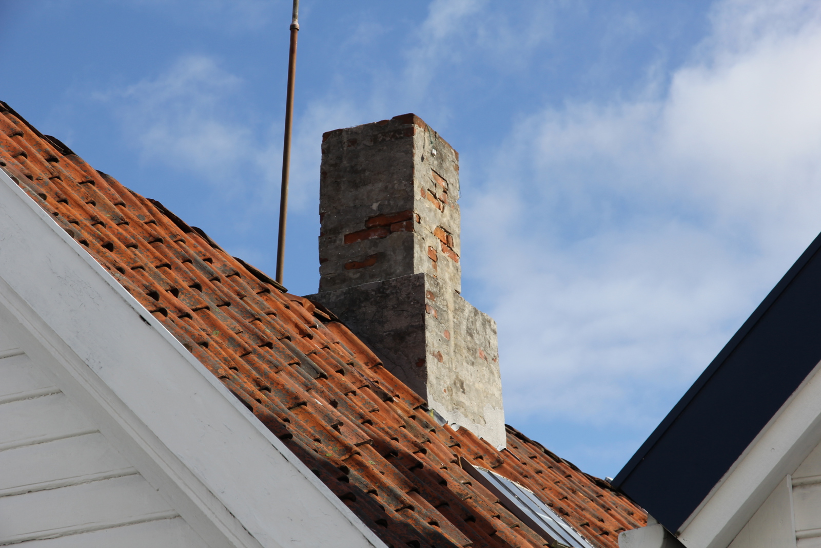 Opprinnelig må «skorsteinen» ha vært et murt matildsted uten røykpipe. Beskrivelser kan tyde på en mannshøy mur av naturstein, men nøyaktig utforming kjennes ikke. Øverst var det anlegg for en stang der matkjelen ble hengt etter skora eller «skjæringen» over ilden i grua. For å unngå røyk og brannfare i dagligstua, var det fornuftig å plassere skorsteinen i forstua. Stua hadde lav himling og var lett å varme opp, mens forstua var åpen mot loftet.