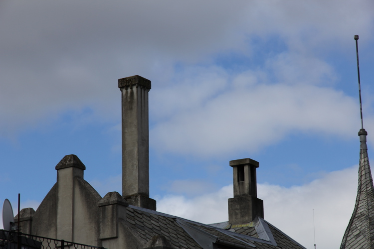 Fra den åpne kjøkkengrua kunne man, gjennom en åpning eller kanal i murverket, fyre med trekull, torv eller ved, direkte inn i naborommets bileggerovn. Bileggeren varmet opp dagligstua eller sovekammerset, som også lå vegg i vegg. Disse rommene slapp da unna den plagsomme røyken fra grua. Røyk fra ovnen kunne uhindret stige opp fra grua til mørkeloftet og derfra ut via enkle åpninger i gavlvegger og tak. Ingen slike tidlige skorsteiner, uten røykpipe over tak, finnes bevart i Norge.