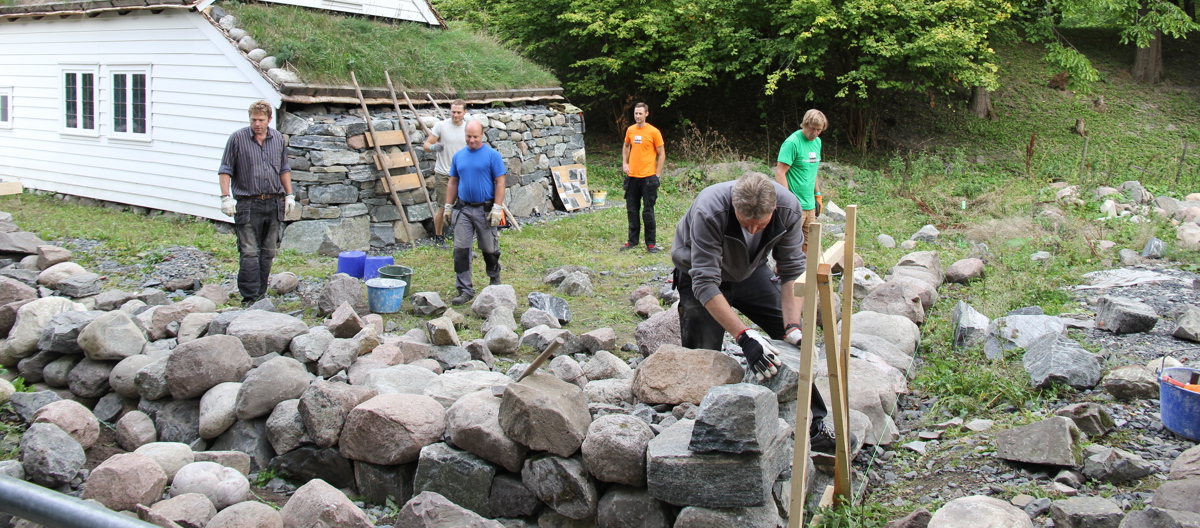 Når du jobber med eksisterende steingjerde, bør sporene etter bearbeiding skjules inne murverket. Det beskytter samtidig en eventuell svekket del av steinen mot ytre påkjenninger, som forvitring.