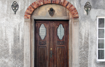 Inngangspartiet med dør og omramming er en viktig del av bygningen. Skiftende stilretninger har medvirket til at utformingen har endret seg mye opp gjennom århu…